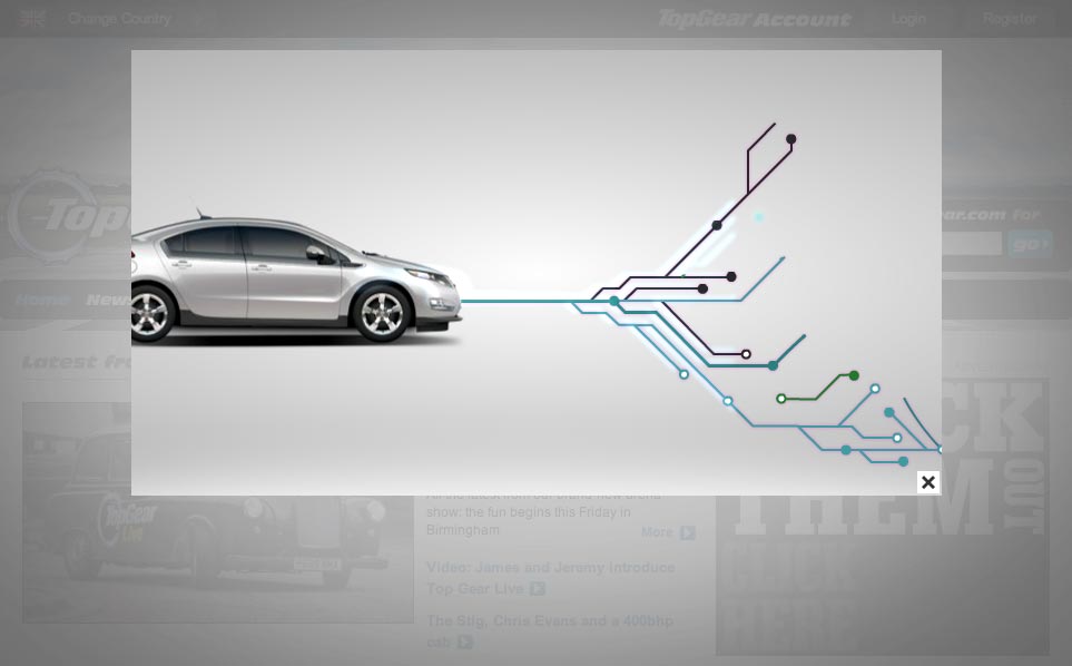 Microsite and online campaign for Chevrolet. The observer is taken on a fantastic journey through the car engine's circuit board.