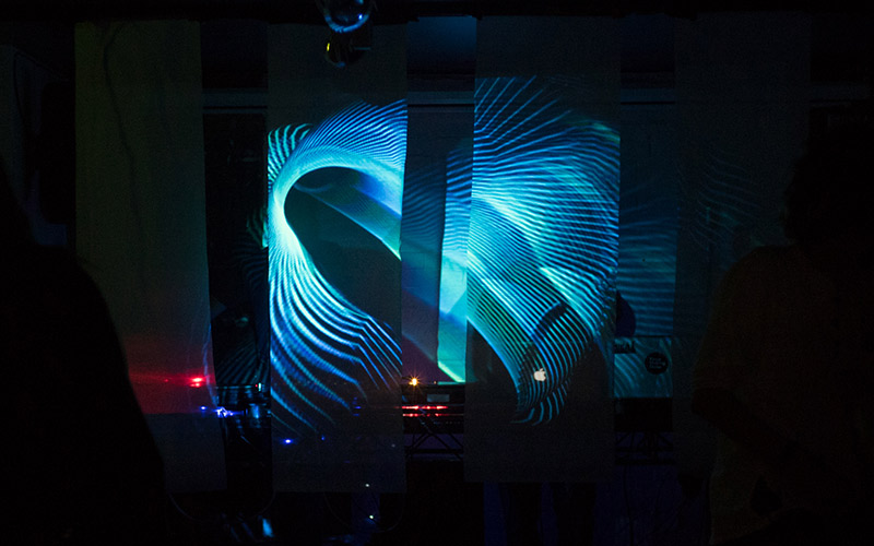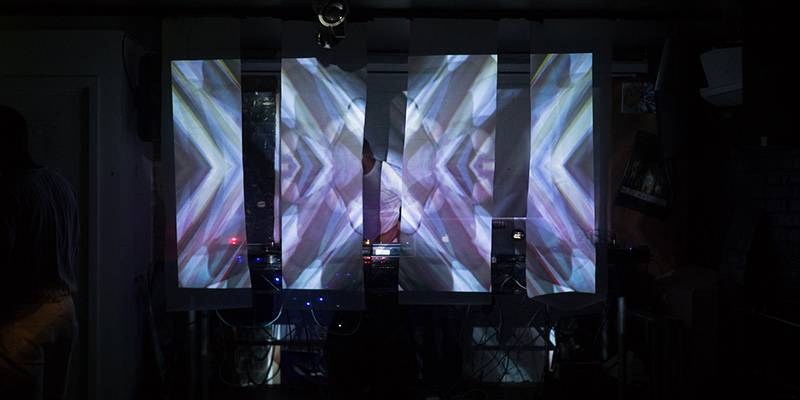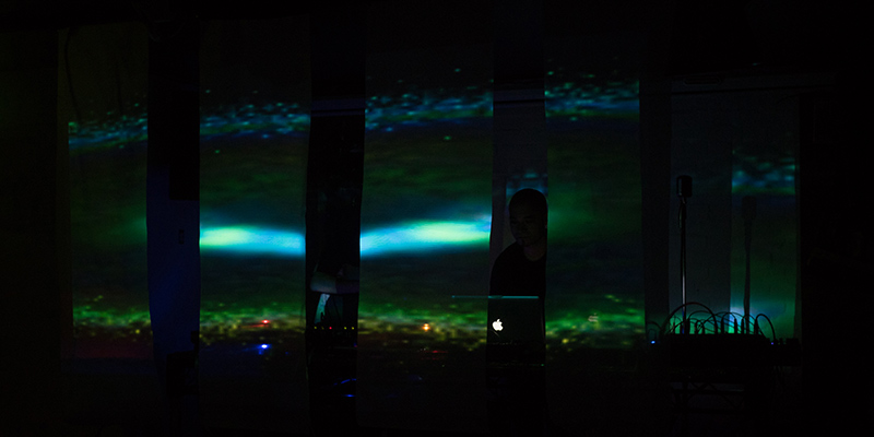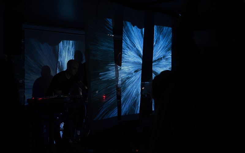 ambient and dark electronic music with real-time visuals, and to transform a space