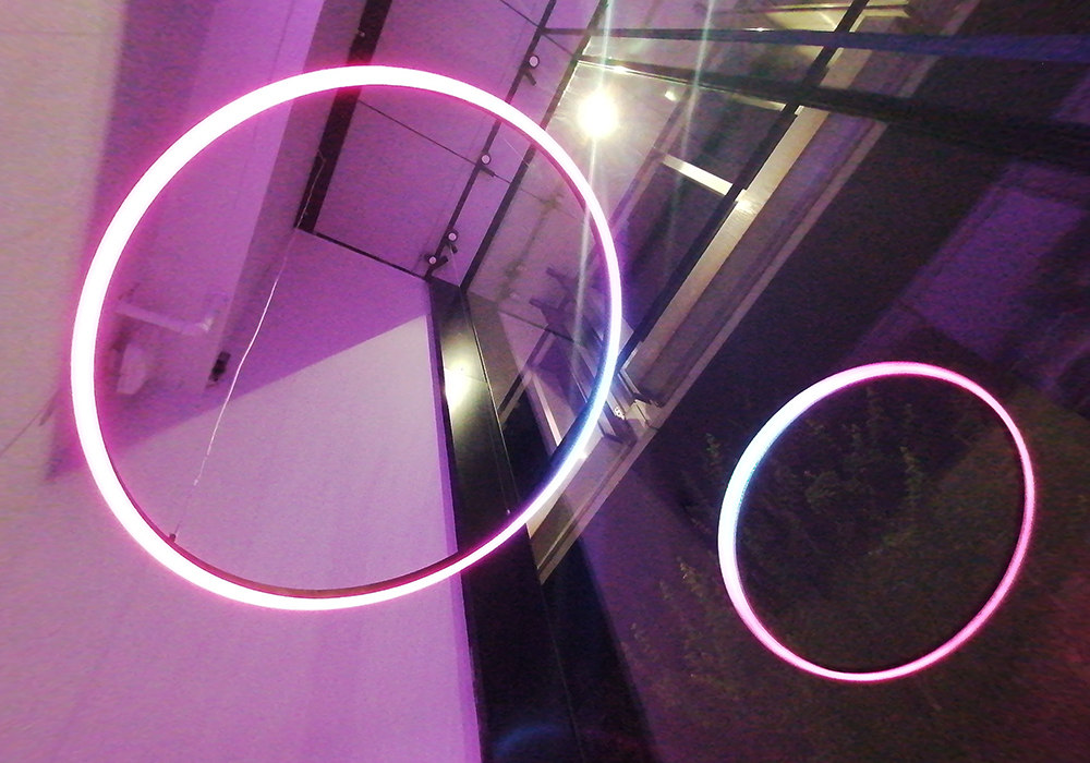 Full immersive light art installation with customised LED systems, hand crafted LED candles and customised projections of about 9m x 2m using four laser projectors. All systems are connected and can interact with each other.