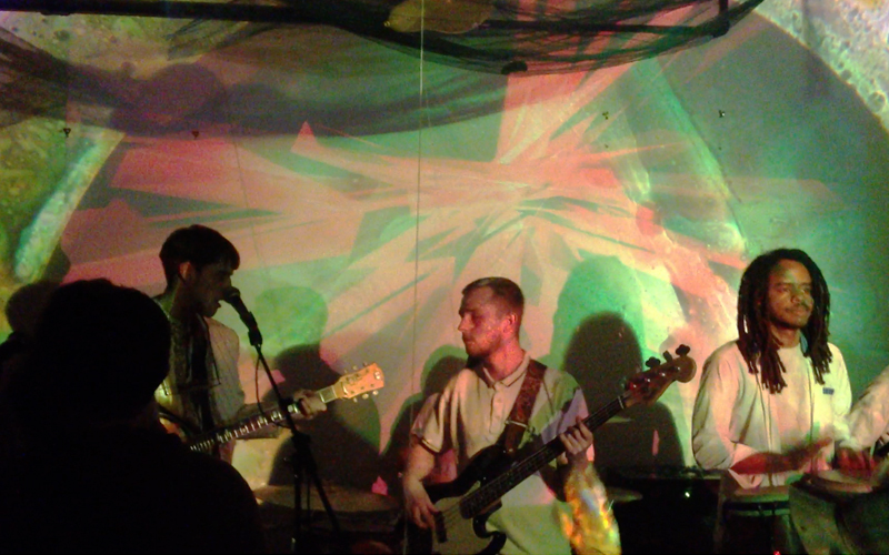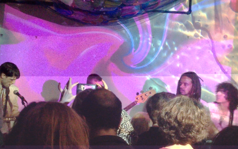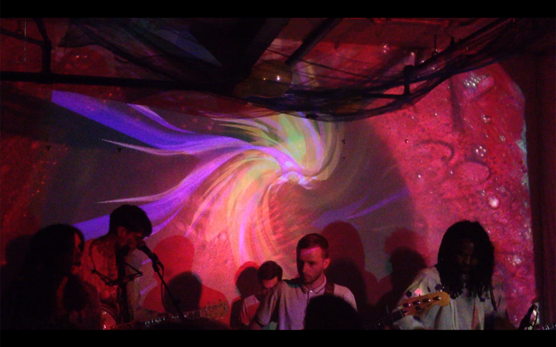 London based (Psychedelia/Rock/Shoe-gaze/Trash) band Frankie Teardrop Dead launched its first album "Better than some Worse than others" on vinyl. For their album launch party the visuals were layered with liquid projections (Mahana), combining organic motions with sound reactive generative graphics.