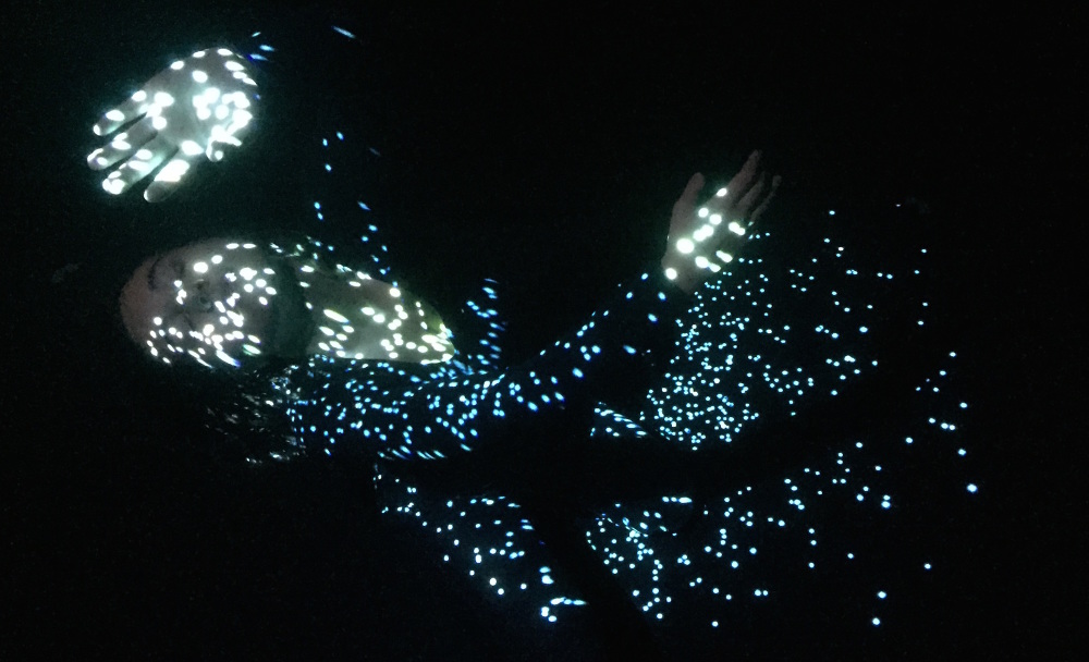 Based on ideas of empathy and mimicry, this project invites you to an interactive media experience, which uses our surrounding space and the interconnection among us to explore theories of affect. Under the Skin is collaboration between a performance artist (Camila Rojas Cannobbio), a musician (David Garofalo) and a visual artist (Hanzo Schwarz). By combining movement, sound and image, they explore together the interdependent relation between audience and performer, and how empathy might emerge through this encounter.